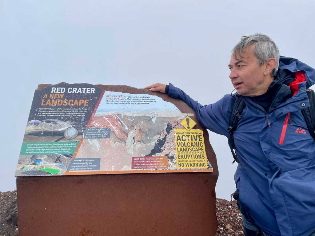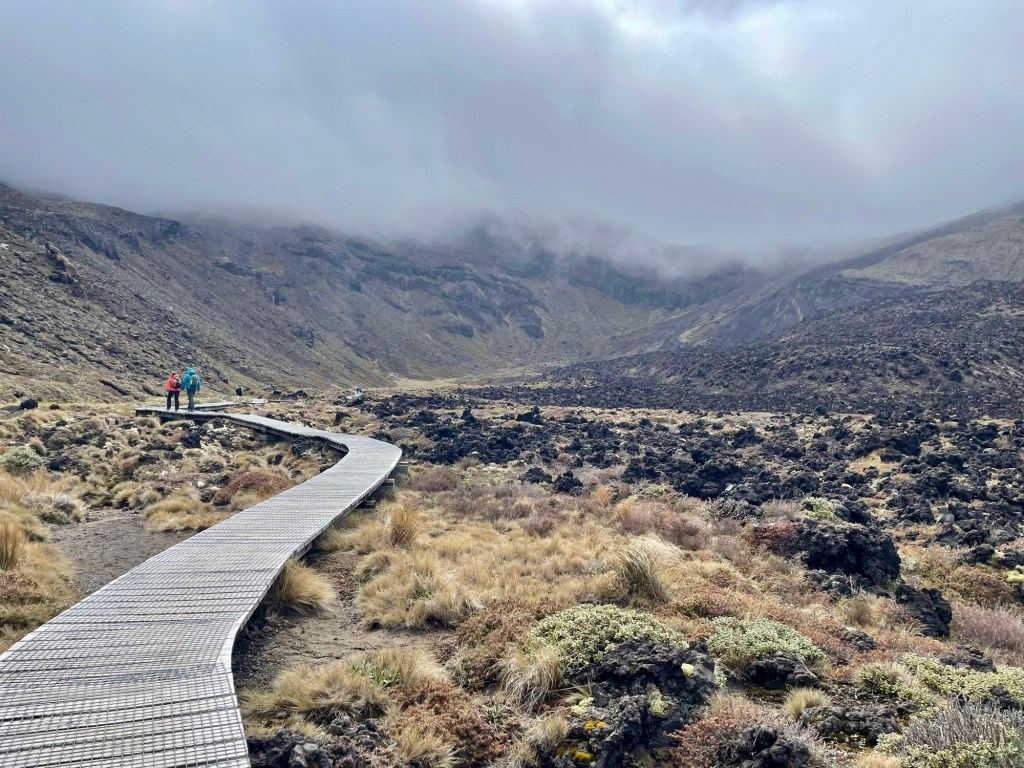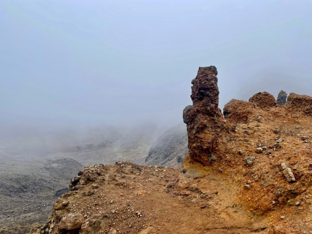 Tongariro Crossing-ul te poarta prin parcul cu acelasi nume, printr-un peisaj vulcanic in care s-au filmat si scene din Lord of the Rings. Si ca un crossing care se respecta, ne-a rezervat o vreme instibila. Daca pe prima parte am putut sa ne bucuam de priveliste, dupa ce am trecut de prima culme si pana in varf, l-am tinut pe Horia de mana, ca altfel il pierdeam in ceata.