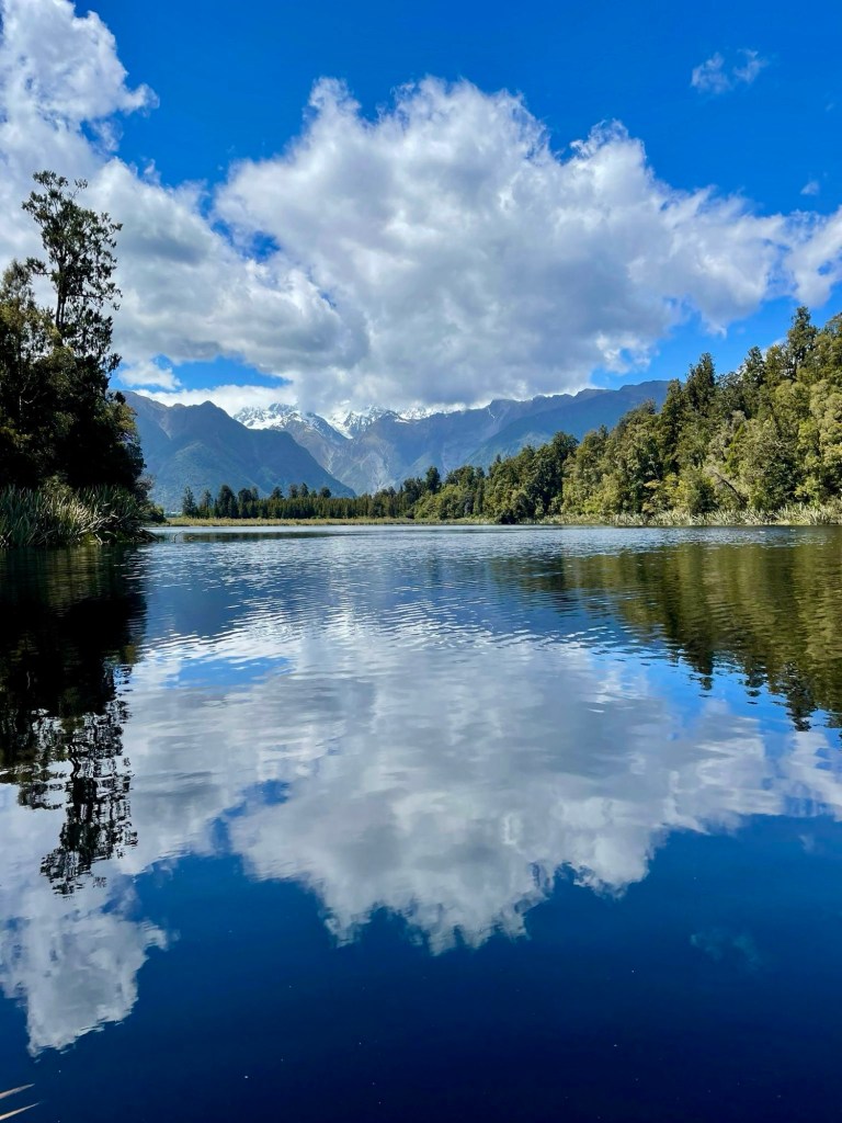 Lacul Matheson e imagine emblematica pt NZ pentru ca in zilele fara vant formeaza oglinga perfect. Azi n-a fost una din acele zile 🙂
