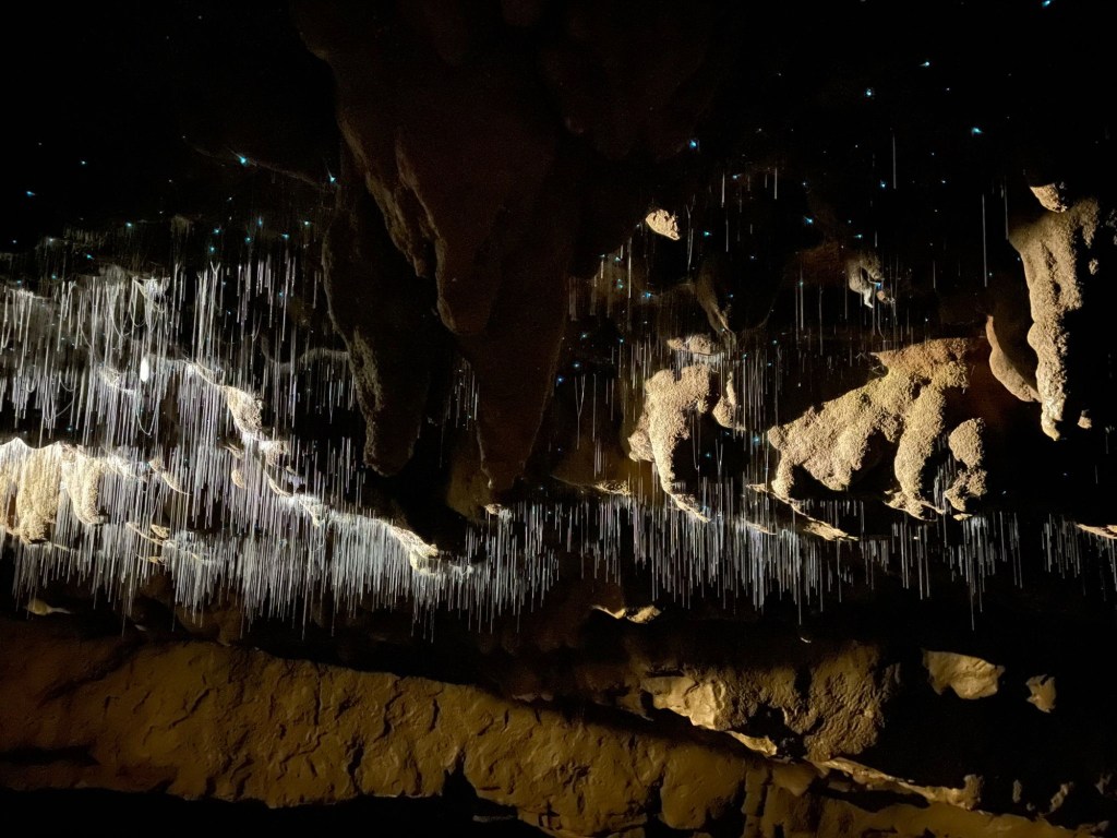 In schimb pestera Waitomo si-a meritat banii. E faimoasa pentru glowing worms. Niste tantari isi depun larvele pe tavanul pesterii si cand micutilor le e foame le straluceste funduletul.