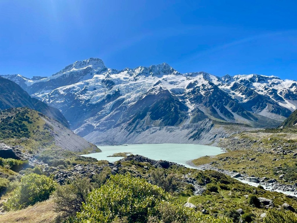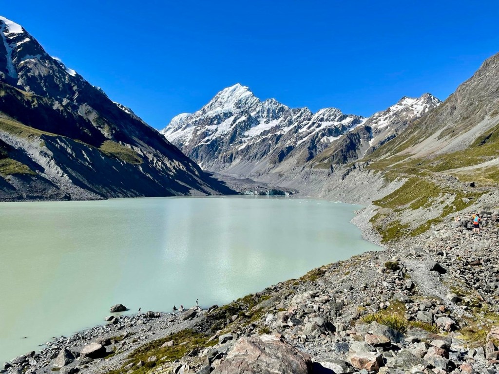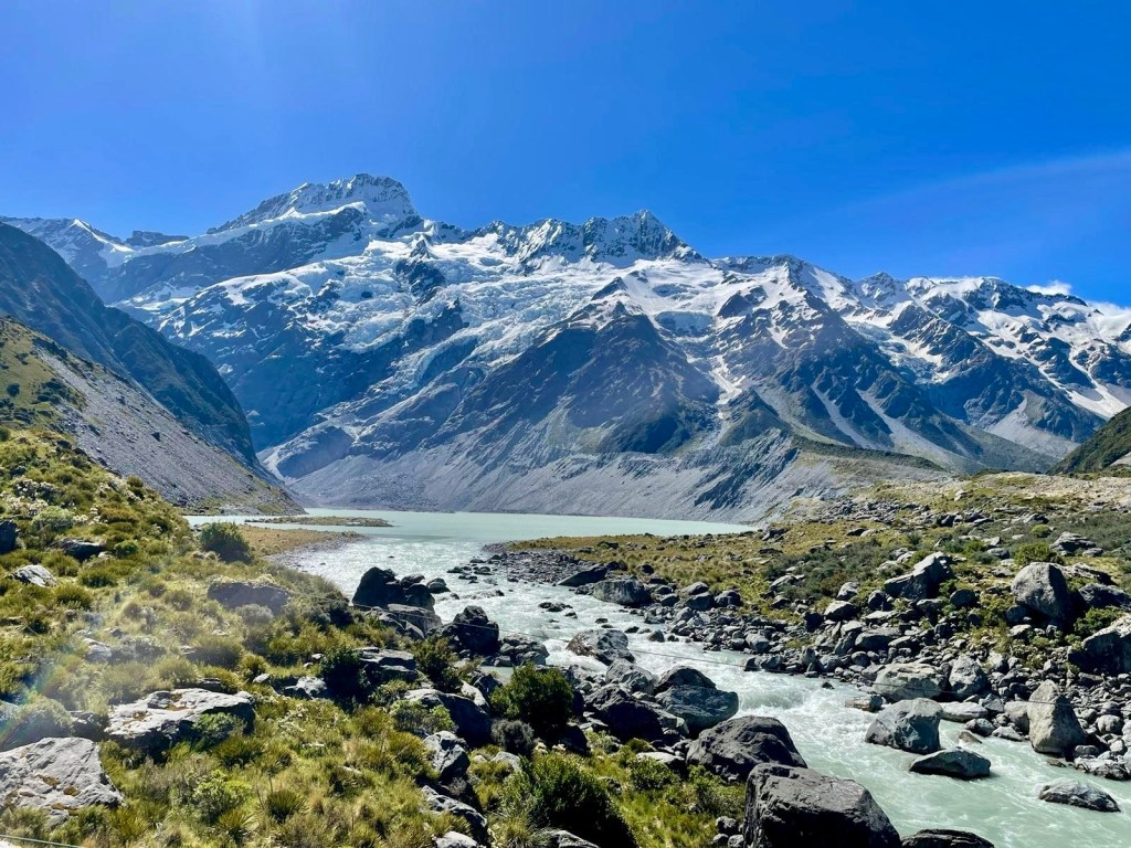 Traseul se termina la gura ghetarului care formeaza lacul Hooker.