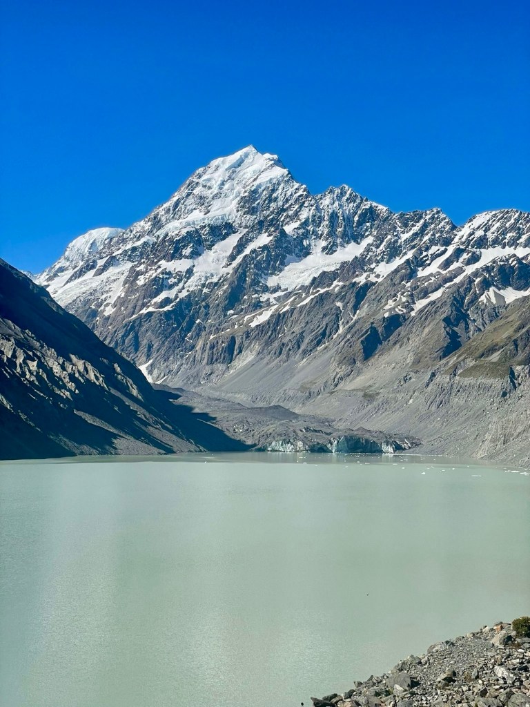 Insa destinatia noastra de azi a fost Aoraki, noua denumire a Mount Cook. NZ incearca sa integreze cultura maori mai mult in identitatea lor si se lauda ca un pas facut in directia asta este redenumirea celui mai inalt varf al Alpilor de Sud, 3754m.