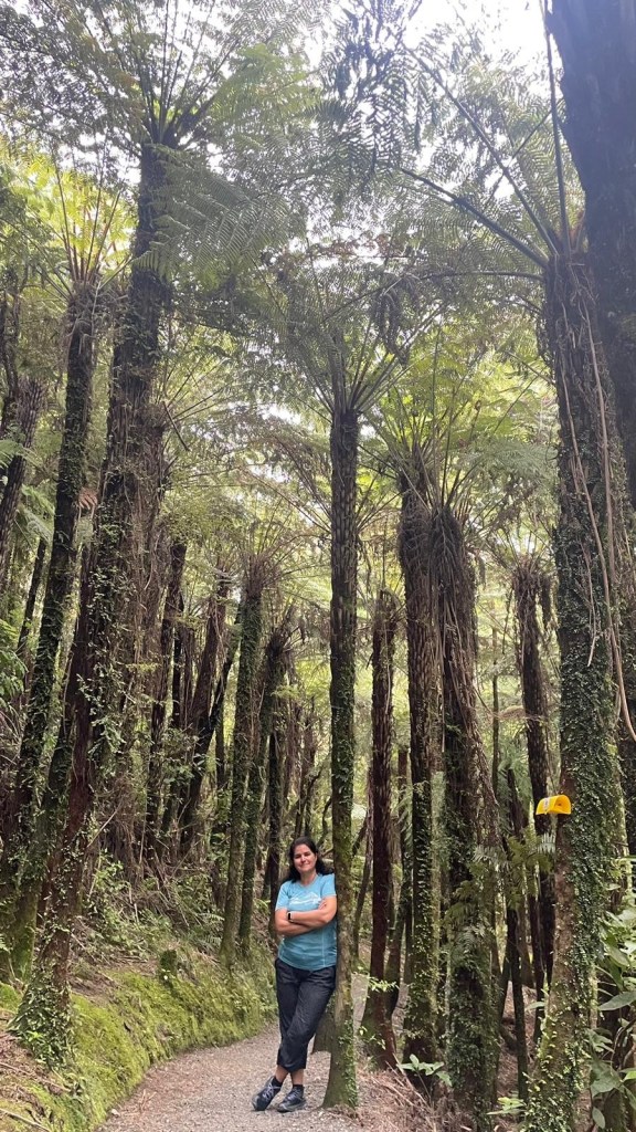 Frunza de feriga este unul din simbolurile nationale ale NZ. Au vreo 200 de specii, din care 40% cresc doar aici. Am citit ca unele ar fi mai mari de 4m, dar am zis e o gluma, asta pana ne-am oprit la Hunua Falls.