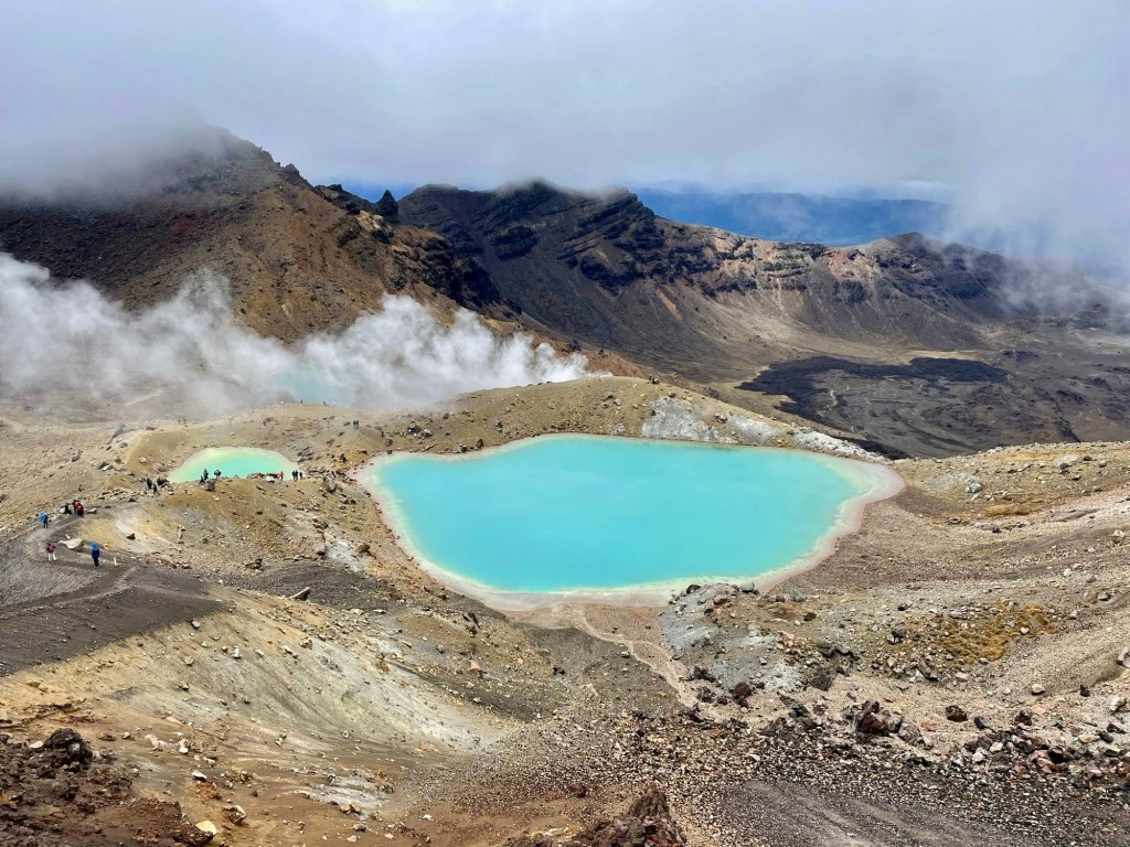 Totusi la coborare ne-a suras norocul. S-a risipit norul si sutele de turisti ce erau in zona s-au repezit sa pozeze lacurile maori sfinte. Cu ocazia asta am vazut si de unde vine mirosul minunat de oua clocite. Bonus!