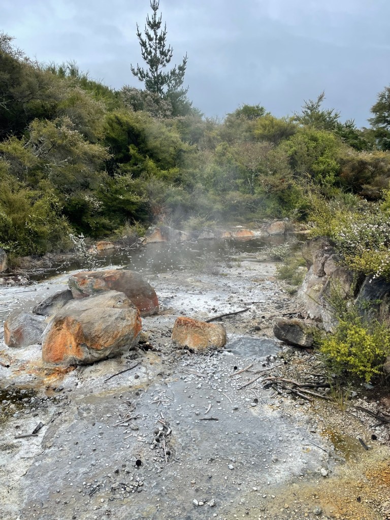 De cum intri in Rotorura te izbeste mirosul de sulf, si nu e de mirare cand in parcul lor central ai balti de 100 grade C care bolborosesc continuu.