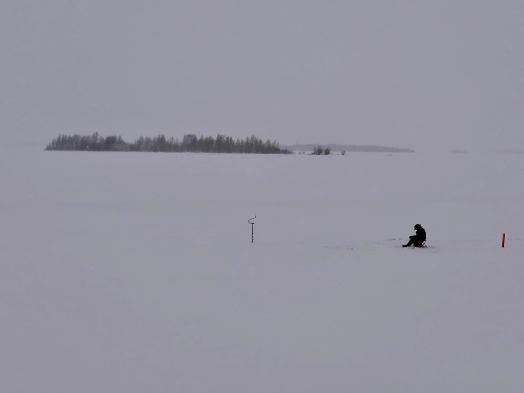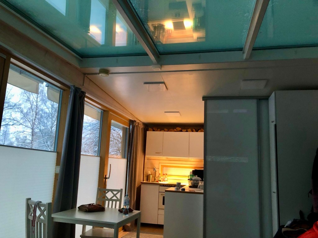 Finlanda are peste 200000 de lacuri, asa ca am popsit langa un lac complet inghetat. Ideea e foarte buna ca asa ai deschidere sa vezi cerul, fara sa-l mai ascunda vegetatia.