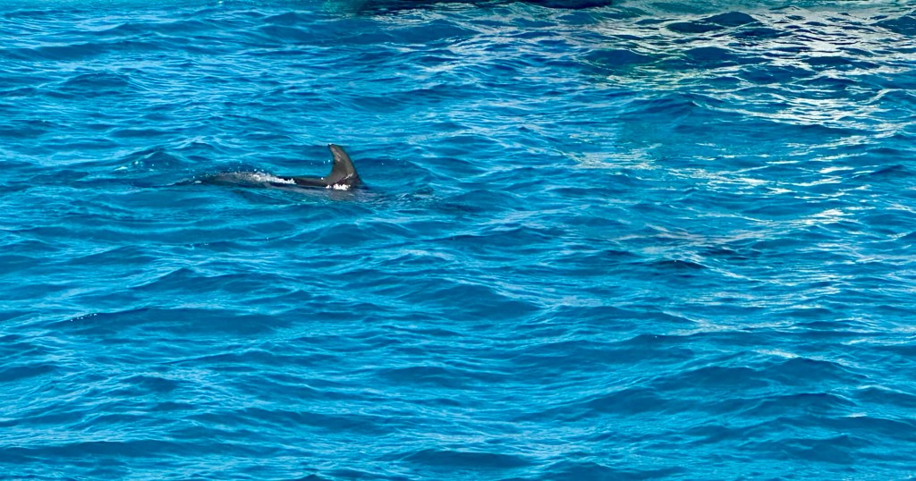 Poze de la recif n-am, insa am cu o spinare de delfin care a venit sa se joace pe langa barca noastra.