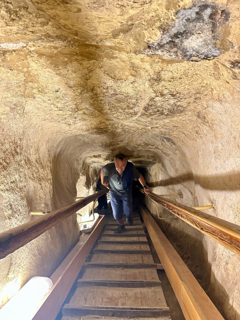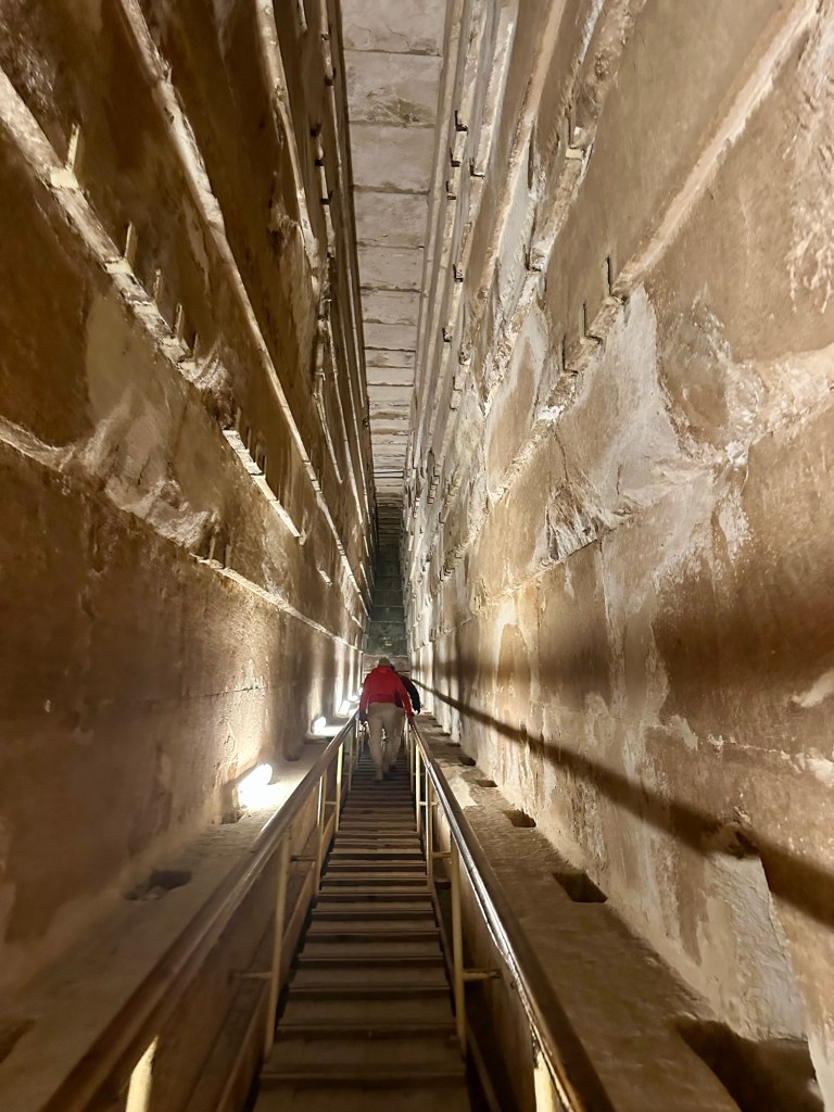 Chiar daca intrarea in piramida e destul de scumpa si vizita scurta, o recomand. Intrarea actuala a fost sapata in sec XIV de un sultan care se saturase sa tot caute intrarea asa ca si-a facut singur usa. Si a sapat pana i-a suras norocul si a dat in marea galerie.