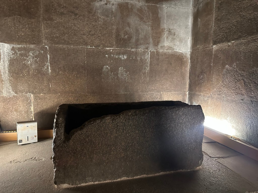 Galerie care l-a purtat apoi spre sala regelui in care acum se afla doar un sarcofag. De fapt cam tot asta se afla si pe vremea sultanului pentru ca piramida a fost jefuita inainte de venirea romanilor. Ei sunt cei care au resigilat intrarea.