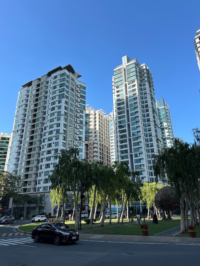 Manila, cu ai ei 17 milioane de locuitori, e un amestec de extreme – cartiere nou construite, cu arhitectura moderna alternand cu zone unde cladirile vechi par a sta sa cada, oameni cu bani care umplu mallurile imense, cu magazine de lux, contrastand cu multi altii care dorm pe cartoane impreuna cu cativa caini jigariti, masini noi, in principal japoneze sau coreene si apoi saracii care circula cu un soi de “caruta” pe roti.