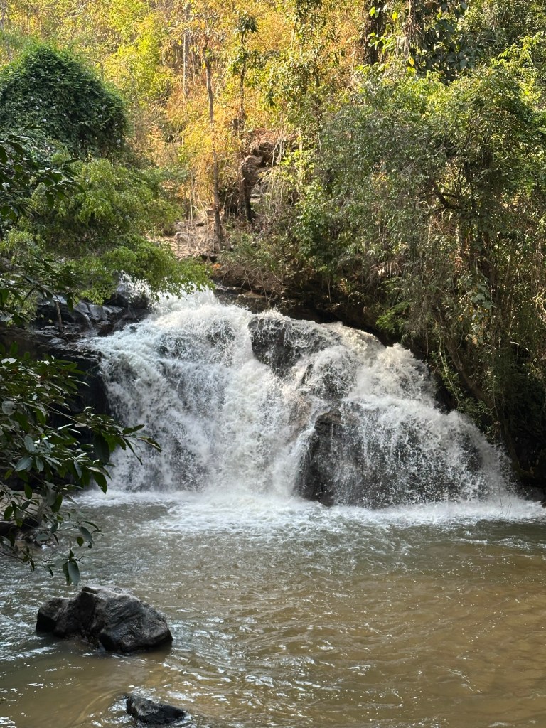 Mae Sa waterfall – cascada in trepte care are traseul amenajat ca sa mergi de-a lungul ei. E frumoasa cascada si pe langa asta aici am vazut cea mai mare diversitate de fluturi. Greu de pozat ca fluturii astia au ADHD si nu stau la pozat, asa ca m-am multumit cu un paianjen.