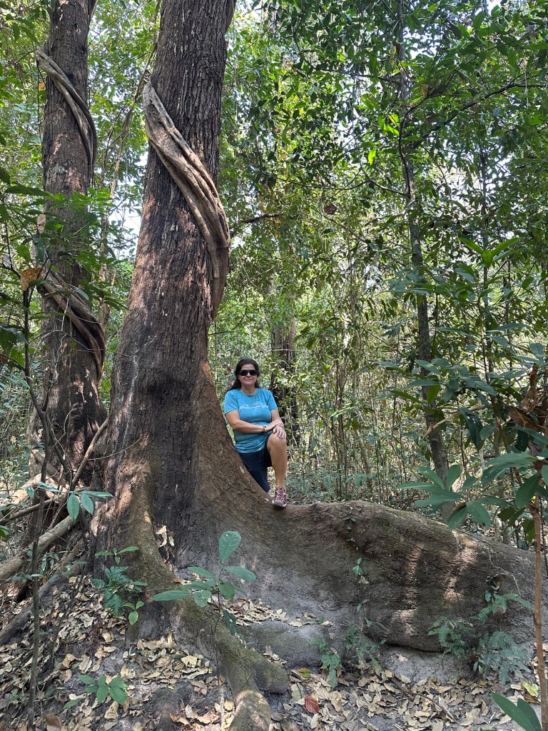 Insa partea frumoasa e dupa templu, cand poteca se ingusteaza si trebuie sa te strecori pe sub bolta de bambusi si liane.
