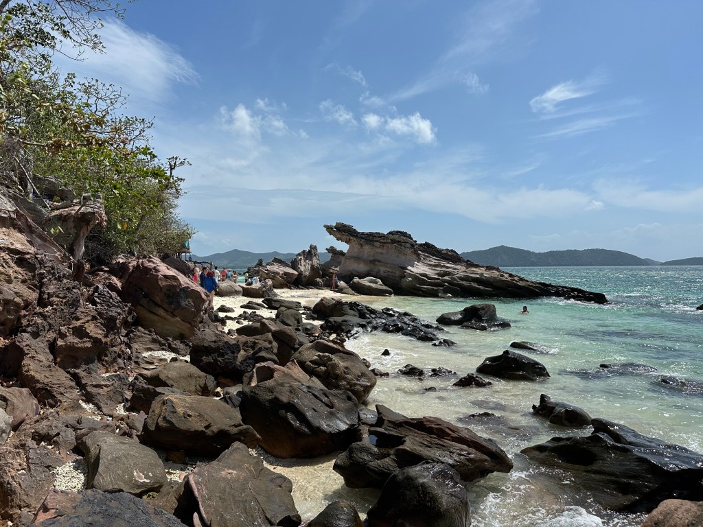 - Si apoi ajungi la JB island care e draguta insa super aglomerata. Poti face si baita, asta daca-ti permite timpul, pentru ca-n excursiile astea de grup esti mereu cu timp limitat