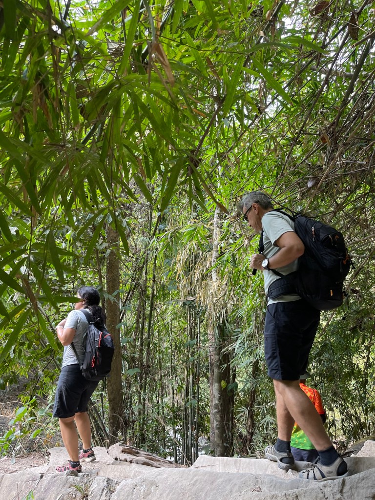 Traseul e tare frumos prin jungla locala cu multi bambsi si cascade.