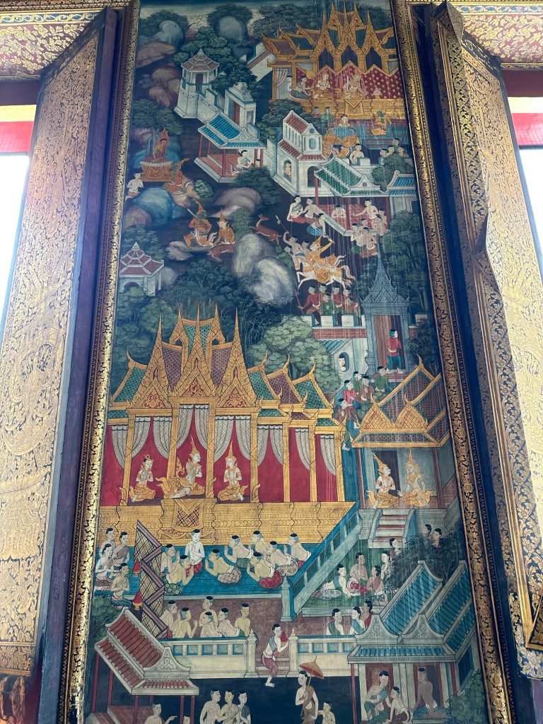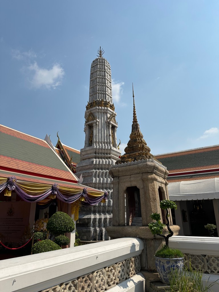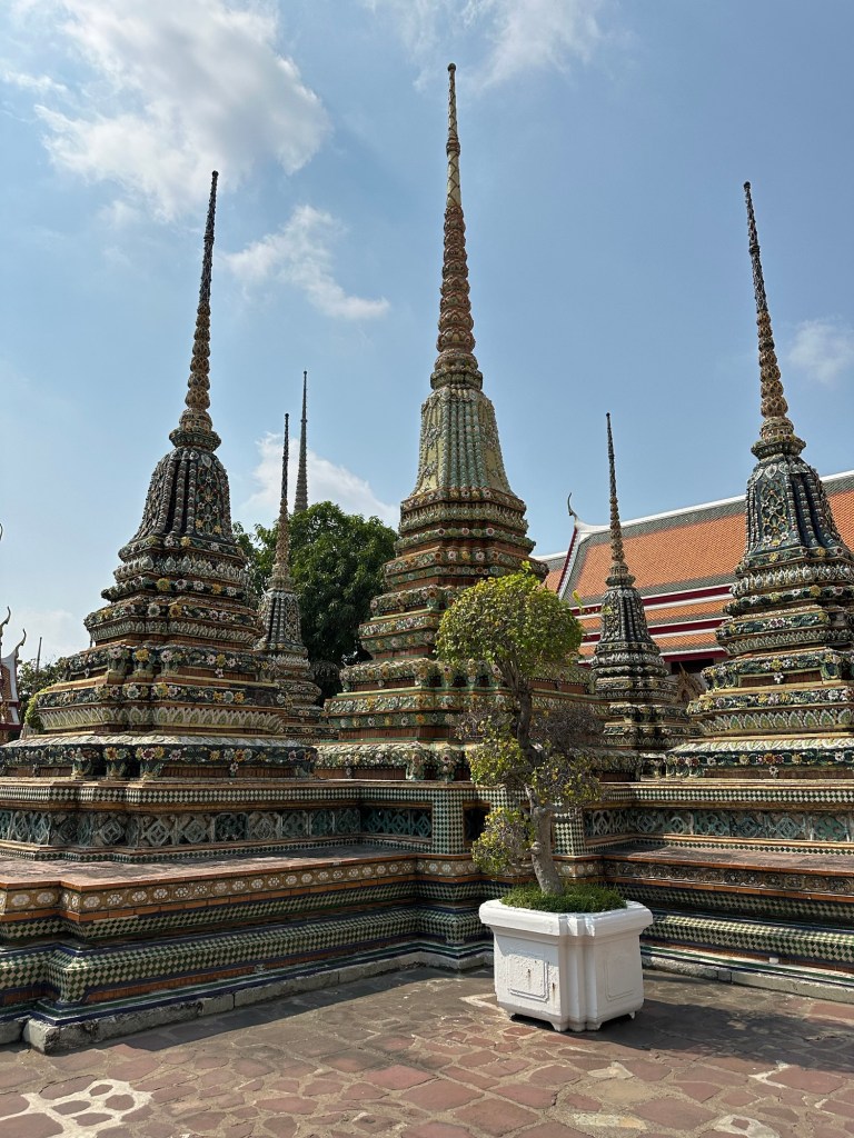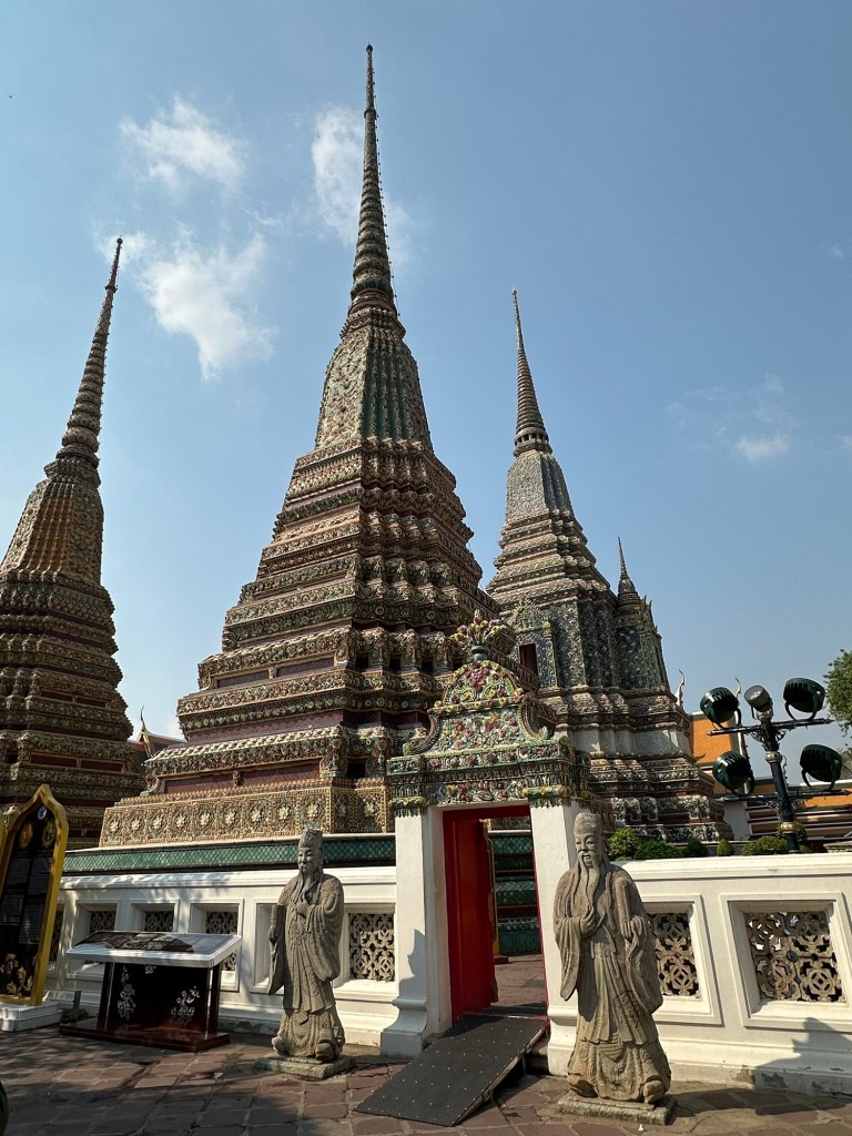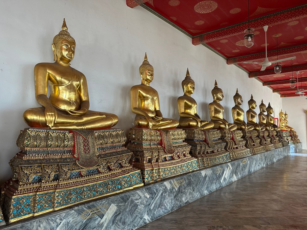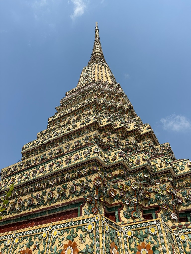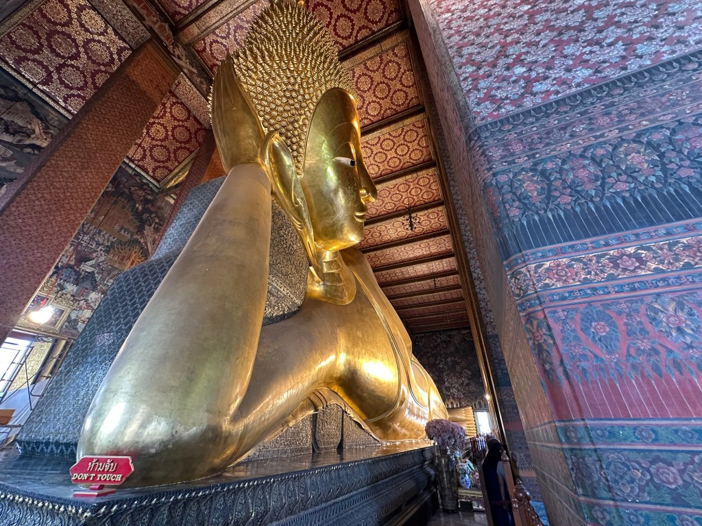 Wat Pho – templul renumit pentru al lui Buddha culcat, lung de 46m. Regele Rama I si-a dorit sa aiba un templu aproape de palat, asa ca la 1801 templul a fost finalizat.