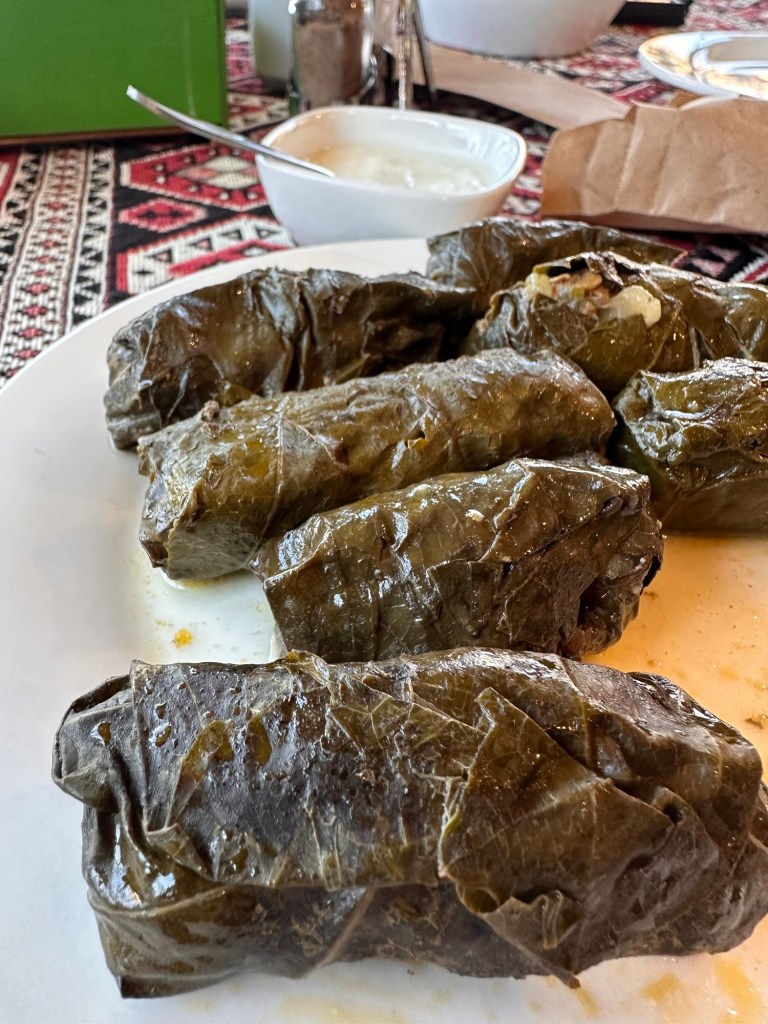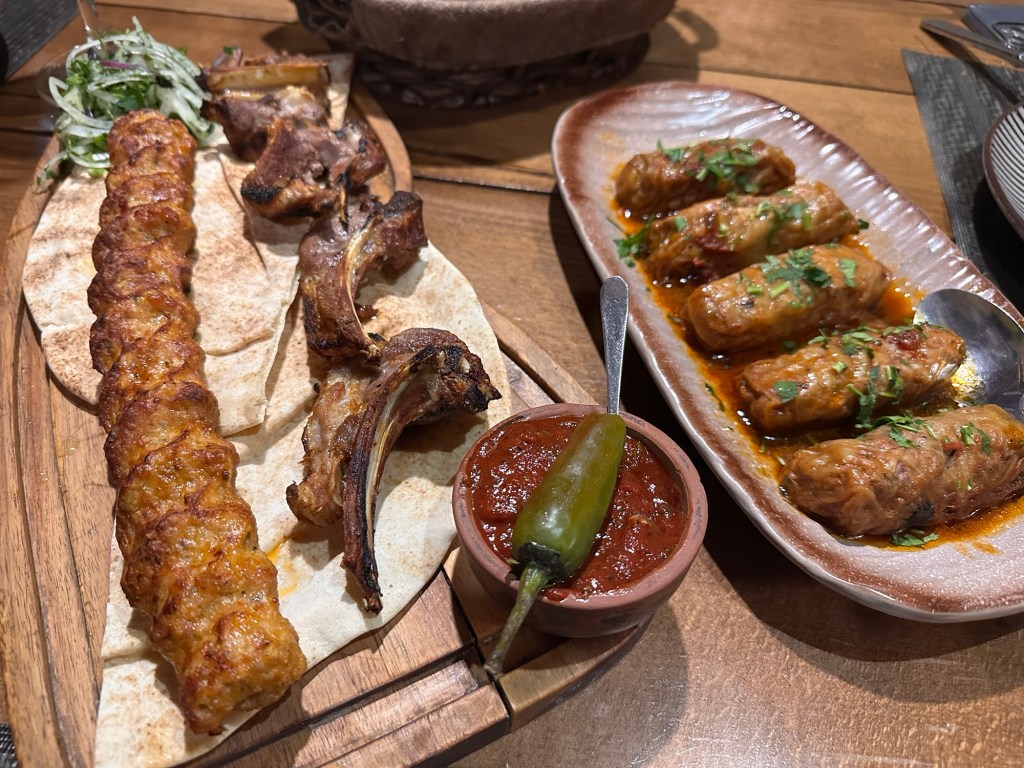 Gasesti aici celebrele noastre sarmale, atat in foaie de varza cat si in vita-de-vie, toate felurile de carne gatite in diverse forme de la gratar la tocanite, dumplings cu diverse umpluturi sau painici lavash lipite efectiv pe peretii cuptorului. La deserturi insa oferta este slabuta.