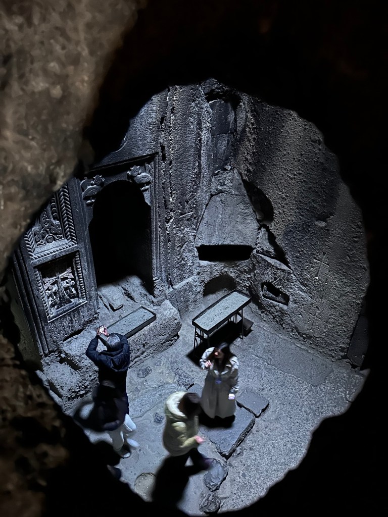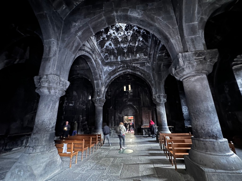 Manastirea Gehgard suprinde prin unicitatea ei. A fost sapata intr-o stanca de bazalt si din cauza asta este destul de bruta si tare intunecata. Parca te apasa, si sincer nu stiam cum sa ies mai repede 🙂