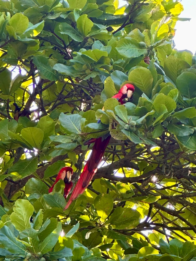 Cat daca vrei sa vezi fauna, noi am stat la o viluta chiar in padure si ne-am trezit in urlete maimutelor Howlers, inconjurati de maimute capucin, si cu papagali rosii zburand in cuplu. Sau poti opri pe drum si sa vezi papagali sau iguane ori soparle mari.