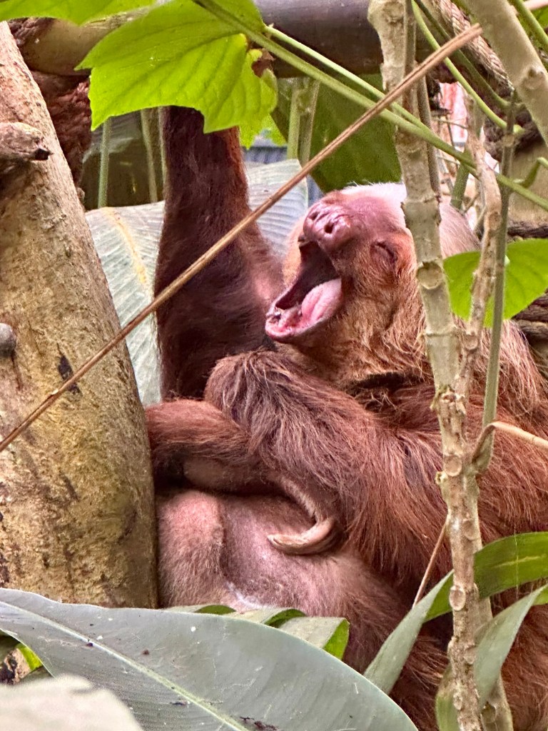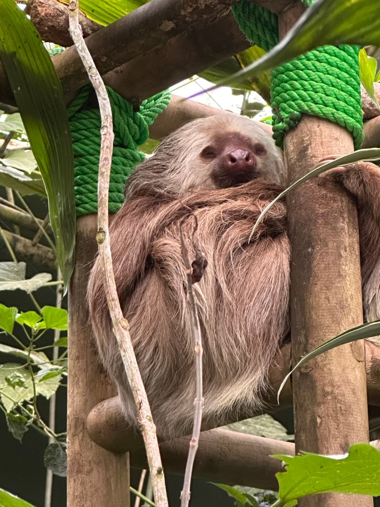 Noi am ales Selvatura pentru ca are si o mica rezervatie de lenesi. In parc am vazut doar o pata de blana dintr-un lenes, insa aici i-am putut vedea in toata frumusetea lor. Si fiind ai ora de masa, era si treji, altfel ei dorm intre 18-20 de ore.