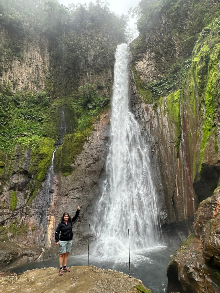 Noi ne-am oprit la Catarata del Tore care fata de alte cascade cade intr-un crater vulcanic unde poti vedea diverse tipuri de roci amestecate cu vegetatia luxurianta.