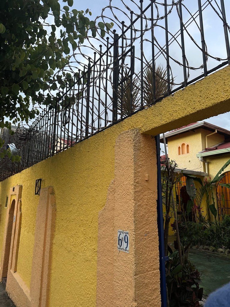 Fiecare locuinta avea gratii la geam plus grilaj exterior, uneori si cu sarma ghimpata. La fel si in San Jose. In Monteverde si Arenal pare mai chill, in rest …